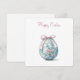 Um ovo de Páscoa lindamente decorado com um padrão floral em tons pastéis de azul e rosa, encimado por um laço encantador. O design vibrante captura a festividade da estação com elegância e charme. Perfeito para enviar votos calorosos a familiares, amigos e entes queridos. Espalhe a alegria da Páscoa com um cartão que reflete seu estilo individual e calor humano. Faça desta Páscoa algo extra especial!