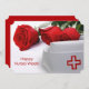 Convite Feliz Semana das Enfermeiras. Rosa vermelha e plac