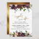 A parte superior e inferior deste convite temático de casamento elegante foram decorados com flores em aquarela em tons de vermelho profundo, burgundy, Marsala, grená, pêssego e rosa rosado. As palavras-chave "felizes para sempre" foram renderizadas em uma fonte de letra cursiva moderna e giratória e, em seguida, decoradas com um efeito de folha de ouro falso. Todo o outro texto é editável e aparece em uma fonte versátil com serifa que você pode alterar se desejar. No verso, coloquei um gráfico ombre com folha de ouro falso liso. Todas as camadas foram adicionadas separadamente e deixadas desbloqueadas para lhe dar o máximo controle de design; edite esta aparência tanto quanto você precisar e não hesite em entrar em contato comigo se você precisar de ajuda com o processo. // 56 //
