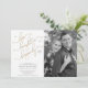 Este belo, moderno e branco preto e Dourado roteiro Felizmente Depois do convite para Festas de noivado Horizontal, preto e branco, apresenta um falso roteiro de caligrafia em folha de ouro lendo 'To Love, Laughter, and Felily Ever Ever After' como o principal elemento design. O design de texto é belamente complementado pela fonte moderna sans serif all boné em preto, sobre fundo branco e nítido, detalhando a hora, data e local da festa de noivado. O lado direito da placa apresenta a sua foto de noivado vertical favorita, que tem um filtro preto e branco aplicado a ele, para que você possa usar a sua foto favorita e ela impressão em preto e branco (desligue o filtro se você preferir uma imagem colorida). A parte traseira da placa é terminada com uma textura moderna de cor d'água preto e branco, para completar o design chic.