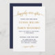 Convide seus convidados para comemorar seu dia especial extra com este convite de casamento marinho e ouro moderno. Adicione seu próprio toque especial a este design simples e elegante que contém as palavras "feliz para sempre", definidas em uma tipografia de script dourado fluindo, incluindo texto curvo e glifos de cauda longa, juntamente com um texto azul marinho formal contrastante. Sinta-se à vontade para me contactar se precisar de ajuda ou de um pedido personalizado. Uma cor de fundo azul do marinho de coordenação está no verso.