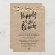 Planejar feliz para sempre depois da comemoração do brunch, seu dia de casamento? Convide seus amados convidados com este tema "Feliz para sempre após o brunch", no moderno design de script rústico (madeira marrom de cottage, luzes de cordas), indicando a data, hora, local e detalhes de RSVP.