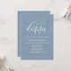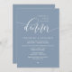 Anuncie e partilhe a sua alegria para sempre em estilo com o nosso moderno tema design (Felizmente para sempre após o janta) cartão de convite para comemoração de casamento. É ideal para casais que decidiram celebrar o seu melhor dia. Com seu design sofisticado, mas lúdico, este convite certamente define o tom de um evento inesquecível. O cartão de convite apresenta um moderno design, empoeirado tema azul, acrescentando um toque de elegância eterno à sua celebração. Projetado por TeeshaDerrick
