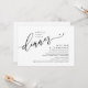 Marque o começo de sua eternidade com elegância usando nosso tema contemporâneo preto e branco, o convite para celebração de casamento, "Feliz Nunca Depois do Janto". Perfeito para os casais estendendo sua alegre ocasião, este convite exude sofisticação com uma sugestão de brincadeira, definindo o palco para um evento memorável. Adorado com um tema design de roteiro moderno de eterno, ele adiciona um toque de encanto refinado às suas festividades. Feito por TeeshaDerrick, este convite promete capturar maravilhosamente sua história de amor.