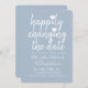 Convite Felizmente Mudando a data Casando Azul Azul