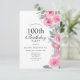 Convite Feminino Floral Aquarela Rosa Aniversário de 100 A