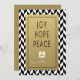 Escolha este design de cartão de feriado corporativo preto, branco e ouro impressionante para obrigado de seus clientes e enviar cartões de natal. Um moderno design de cartões de feriado corporativo que apresenta um fundo padrão preto e branco de herringbone com uma etiqueta de ouro e as palavras com uma simples letra branca "Joy, Hope, Peace". Este maravilhoso modelo de cartão de convite simples fornece um marcador de posição para o logotipo da sua empresa na frente, assim como uma mensagem personalizada para seus clientes na parte traseira da placa! Selecione a opção "Personalizar" para alterar a cor do texto ou do plano de fundo adicionado, bem como para mais opções de personalização.