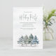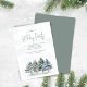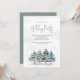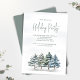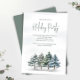 Este design apresenta um convite para festas de férias, com uma elegante cena de floresta a aquarela com pinheiros de inverno, um design de floresta verde, com vegetação moderna minimalista, simples verde e folhagem botânica, perfeita para as festas de Natal clássicas, com um clássico sabor festivo tradicional.