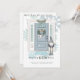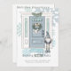 O cartão de Natal Feliz Feriado em Declínio e o anúncio do Novo Endereço em um... Um design de floco de neve de inverno com porta da frente e elfo de pernas longas fofo com uma coroa e botas de patinagem de gelo - novo cartão de saudação de Ricaso - adicione sua própria saudação, endereço e uma fotografia