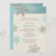 Convite Feriado de Natal Silver Blue Snowflake