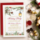 Placa de Convite para Partido Feriado Floral Moderno Elegante Pinheiros, Holly Berries e Poinsettia - Script Vermelho, Quadro Dourado