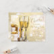 Dourado convite para festas de Natal com óculos elegantes de champanhe de ouro e fita de ouro embrulhada em um belo fundo de um galho de ouro. Este elegante convite de festas de Natal dourado é facilmente personalizado para o seu evento simplesmente adicionando os seus detalhes no estilo de letra e na cor da sua escolha.