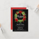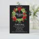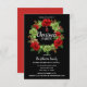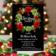 Convites de festas de Natal Modernos personalizados em cores vermelha, preta, verde e branca. Fundo em preto, em vermelho. Coroa com arcos vermelhos e verdes, ornamentos. Modelo editável - simplesmente adicione seu texto. Todo texto pode ser alterado fonte, cor e tamanho. Perfeito para festas caseiras, festas de escritório, festa de janto de férias ou qualquer outra festa ou ocasião de inverno.
