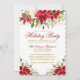 Feriado Elegante Poinsettia Floral Convite Floral - Script Dourado, Vermelhos, Bordas Escaladas, Largura Dourada