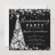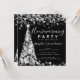 O design elegante do convite de festas do Housewarming do feriado com a árvore de Natal preta de prata festiva ilumina o motivo, nome e data feita sob encomenda e texto adicional