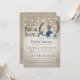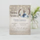 Ferraduras russas e chá de panela floral azul empoeirado com madeira de celeiro e luzes de cordas design. O convite para chás rústicos elegantes com layout de texto moderno pode ser alterado como preferível.
