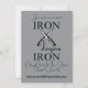 Ferro afiado Ferro com facas cruzadas Convites para Retirada de Cristãos. Uma tipografia simples e moderna. Proverbs 27:17 na Versão Rei James da Bíblia diz, "Ferro afiado ferro; assim, um homem afia o rosto de seu amigo". Verso da Escritura KJV. Design também disponível em camiseta e acessórios. Adicione o Nome/Local da Igreja ou Cidade/Data do Evento/Site ou informações de RSVP.
