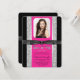 Doce 16 convite de festas com cor-de-rosa quente bonito sobre um fundo brilhante preto e prateado brilhante com um arco preto brilhante. Este belo convite de aniversário brilhante, cor-de-rosa-quente e doce, dezesseis é facilmente personalizado com a sua fotografia e detalhes de eventos no estilo de letra e cor, e com a redação da sua escolha. Você também pode mudar a cor de fundo neste anúncio elegante de graduação rosa-quente.