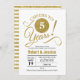 Convite de festas 5 de Aniversário de Casamento. Design elegante em ouro brilhante e branco. Apresenta a fonte moderna do script de tipografia. Saúde a 5 anos! Pode ser personalizado em qualquer ano. Envie-me uma mensagem se precisar de mais personalização.