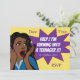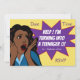 Uma design de pop de arte engraçada moderna adequada para uma festa de uma adolescente de uma garota de desenho gritando "ajuda que estou me tornando um adolescente" em um esquema de cores roxo e amarelo. Esta design é bonita e intransigente e pode ser totalmente personalizada para incluir seus próprios detalhes pessoais.