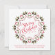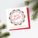 Este design apresenta um convite de festa de Natal, com um estilo alegre e festivo vermelho e verde, com tipografia de pincel, um cone de pinheiro de inverno único, com bagas de azevinho vermelhas, folhagem verde, e elementos botânicos de Natal