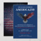 Celebre um marco único com este Convite de Celebração da Festa America250, criado para homenagear o 250º aniversário dos Estados Unidos em 4 de julho de 2026. Perfeito para festas patrióticas, encontros comunitários, celebrações de bairro e eventos comemorativos históricos, este convite define o tom para um Dia da Independência significativo e festivo. Projetado para marcar o Semiquincentenário da América, destaca orgulho nacional, tradição e união, ao mesmo tempo em que convida os convidados a desfrutar de uma noite memorável que pode incluir boa comida, companhia animada e fogos de artifício. Fácil de personalizar, basta adicionar os detalhes do seu evento para criar um convite profissional e atraente disponível em formatos impresso e digital. Ideal para anfitriões que planejam uma celebração patriótica de 4 de julho que homenageia o passado