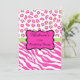 Personalize este convite colorido cor-de-rosa para uma festa de aniversário de 21 anos. A design apresenta listras de zebra brancas e rosa-quente fuchsia e peles de leopardo (chita) combinadas para uma design moderna. Um emblema rosa-quente esboçado em preto se senta sobre um bar verde limão e cria uma área de personalização de nome, com palavras de "Partido aniversário de 21 anos" que podem ser personalizadas para outras palavras ou anos. O verso do convite inclui campos para todas as suas informações ou para o seu evento. Você pode facilmente alterar e excluir campos conforme necessário. As cores são brancas, cor-de-rosa fúcsia, pretas e verdes limões. As peles de animais selvagens para design gráfico são uma das tendências mais quentes de arte e design, e são extremamente populares de moda a decoração doméstica. Essa coleção sofisticada de zebra e impressão leopardo é uma das várias combinações de cores disponíveis para sua escolha de convites. Totalmente personalizável para personalizar.