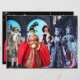 Fantoches venezianas impressionantes, elegantes e antigas e brancas, do !700 , figurinos brilhantes e azuis vermelhos, coloridos, máscaras artísticas venezianas com penas de pavão e fantasia floral roxa-dourada, Colagem Digital Original e Design gráfico por Búlgaro Lumini - Design balístico3d c)