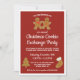Convite de festas anual de troca de biscoitos de Natal. Design vermelho e branco com ilustrações de biscoitos de barba de gengibre com diferentes formas. Personalize-o com as informações de troca e os detalhes de localização.