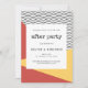 A festa nunca acaba! Organize a festa de casamento após o casamento com esses convites modernos. Cores divertidas para este design de padrão retrô com uma estética de pop art vintage, inspirada no estilo Memphis. Perfeito para um casamento temático dos anos 80.