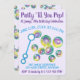 O design de convite apresenta uma ilustração original de uma bolha de bolha soprando bolhas coloridas de sabão iridescente, com PARTY TIL VOCÊ POP em uma fonte roxa. Ideal para uma festa de aniversário ou outra celebração. Apenas personalize com suas informações de evento. Não vê o que está procurando? Precisa de ajuda para a personalização? Entre em contato com Rebecca para ter algo projetado só para você.