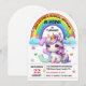 Arco-íris brilhante e colorido e convite de festas Unicorn, mude o texto para o que você quiser quando você pedir