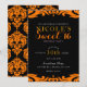 Convite Festa Black & Orange Damask Chic Elegante Sweet 16
