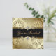Modelo de convite de festa elegante em damasco dourado e preto.