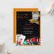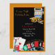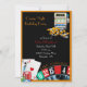 Convite de festas noturno colorido do cassino feito a preto com uma borda laranja e gráficos de uma roda de roleta, slot machine, chips de pôquer e cartões. O convite perfeito para um aniversário de casino ou uma noite de festa de aniversário. Personalize o texto para atender às suas necessidades de evento.