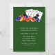 Um convite perfeito para festas de despedida de solteiro ou eventos de cassino. O design apresenta fichas de pôquer, dados e cartas mostrando 4 ases em fundo verde com textura de feltro.