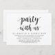 Cartão de convite de elopamento de casamento temático Modern Script (Festa conosco). É perfeito para o seu jantar de elopamento de casamento casual à beira do lago, dança e festa.