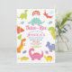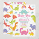 Convite de festa de meninas ou meninos com três dinossauros Rex. Parte de trás incluída.
