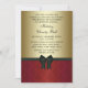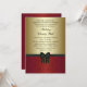Convites elegantes de festa de Natal corporativa em damasco vermelho com preto e dourado. Este fundo em damasco vermelho e dourado apresenta uma elegante fita e laço pretos e é facilmente personalizado para a sua festa ou evento, bastando clicar no botão laranja "Personalize!" para começar a adicionar os detalhes do seu evento, estilo de letra, tamanho e cor da letra e texto. Por favor, note que todos os cartões e convites que você encontrará no Zazzle são gráficos impressos sem joias, laços, relevos, dourados ou peças ou partes adicionais.