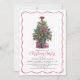 Celebre a temporada com estilo com este convite de festa de Natal vibrante e caprichoso, apresentando uma árvore de fir de aquarela adornada com tons divertidos de rosa, magenta, roxo e dourado. Aninhada numa cesta de vime rústica e rodeada por presentes festivamente embrulhados, a árvore brilha com laços, sinos, ornamentos e acentos de biscoito de gengibre — encimada por um laço magenta encantador e sinos. Caligrafia rosa manuscrita combina com uma fonte sans serif limpa em cinza coordenado para um visual moderno e alegre. Uma moldura ondulada trendy completa o visual. O verso é completado com uma árvore menor e um modelo para o nome da família e ano ou duas linhas curtas de texto personalizado. Perfeito para soirées de Natal, festas de cocktails ou eventos corporativos, este design atraente