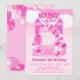 Este convite de festa da casa de saltar rosa é a maneira perfeita de celebrar com uma festa de saltos! O design da casa de saltar e da guirlanda de balões fará com que seus convidados antecipem um momento muito divertido!