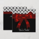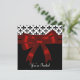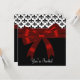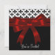 Convite de festa elegante Fleur de Lis preto e branco com design de laço vermelho brilhante. Este modelo de design funciona bem como convite para uma festa de aniversário, festa de cocktails, festa de Natal, festa corporativa, formal gravata preta, baile de formatura, festa de aposentadoria, festa de formatura, despedida de solteira, festa de noivado, casamento, festa de Ano Novo e qualquer outra ocasião especial. Adicione seus detalhes na frente e no verso simplesmente escolhendo o botão laranja "Personalize!" para começar a adicionar os detalhes do seu evento, estilo de fonte, tamanho e cor da fonte e texto. Por favor, note que todos os desenhos de convites que você encontrará na Zazzle são gráficos impressos em papel liso sem joias reais, laços, relevos, dourados ou peças ou partes adicionadas.