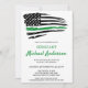 Convites de Aposentadoria Militar Thin Green Line ou Convites de Despedida Militar. Estes convites de festa Thin Green Line do Exército são perfeitos para aposentadoria militar, despedida de implantação militar, celebração de boas-vindas em casa, formatura militar e festa de despedida de soldados. A bandeira Thin Green Line representa todos os militares, exército, proteção de fronteira, patrulha de fronteira, oficial de conservação, guarda-parque, fiscal de caça, agências federais de aplicação da lei. Personalize este convite de bandeira militar com o evento do seu soldado, nome e detalhes da festa.