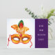 Um convite de na moda e máscara teatral elegante para uma festa de mascarada. Este convite de festas de máscara de Mascarada inspirado na festa, com uma ilustração de uma máscara de fantasia de Vênus amarela com penas de rico, pode ser totalmente personalizado para incluir detalhes. A cor de fundo também pode ser personalizada.