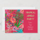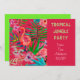 Um convite vibrante colorido adequado para uma festa temática da selva ou da ilha tropical. Este design apresenta um flamingo rosa com palmas, hibisco e folhagem de plantas da selva. A cor de fundo rosa-escuro e texto é totalmente personalizável.
