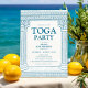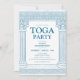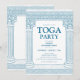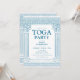 Convite Festa da Toga Grega em azul com colunas elegantes