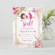 Convite colorido de festa mexicana para festa de chã de bebê com flores mexicanas.
