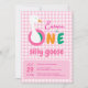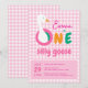 Convite Festa de 1º Aniversário da Menina de Xadrez Rosa d