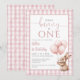 Este convite de 1º aniversário encantador apresenta um adorável bebê coelho segurando balões, e um fundo xadrez rosa. Criado por Thisisnotme©