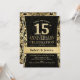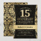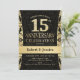 Convite de festa de aniversário de 15 anos de casamento em preto e dourado.